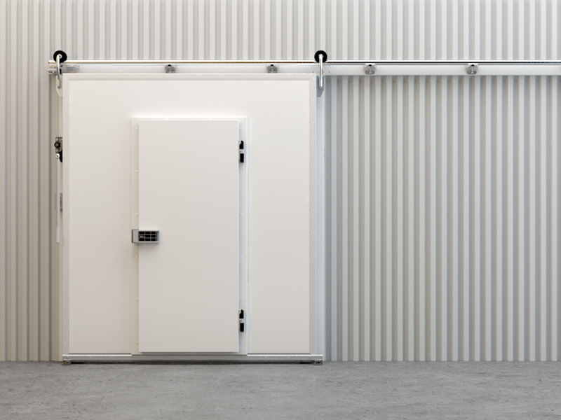 Откатная холодильная дверь промышленной серии ОД (пром) Полотно двери - оцинкованная окращенная сталь 0,6 мм Рама двери - алюминиевый профиль особой конструкции с анодированным покрытием |