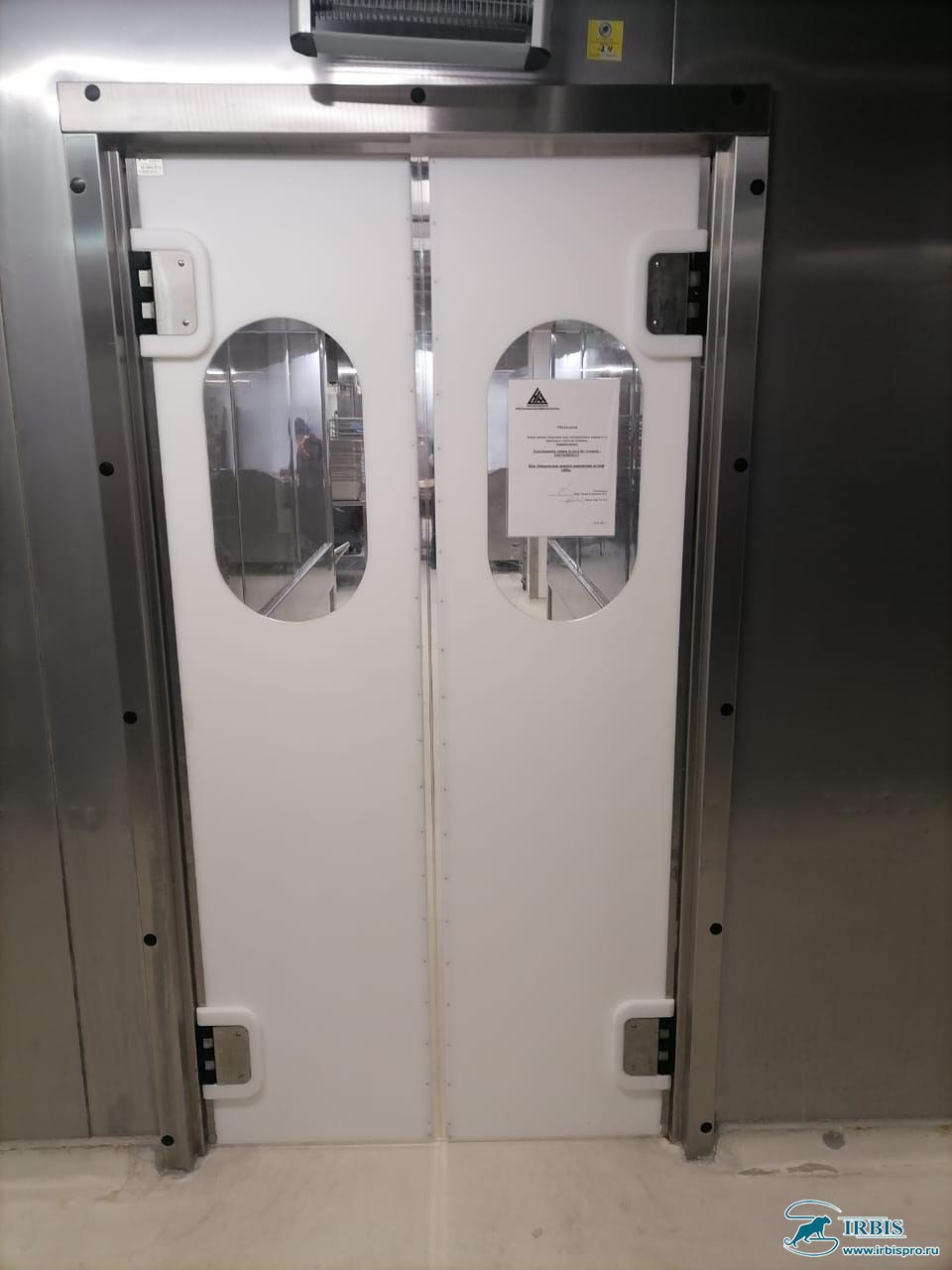 Завод «Ирбис» предлагает пластиковые маятниковые двери МД (Пст-Vcam), которые используются на предприятиях сферы производства продуктов питания. Они позволяют оптимизировать людские потоки, устранить сквозняки, функционально разделить различные зоны.