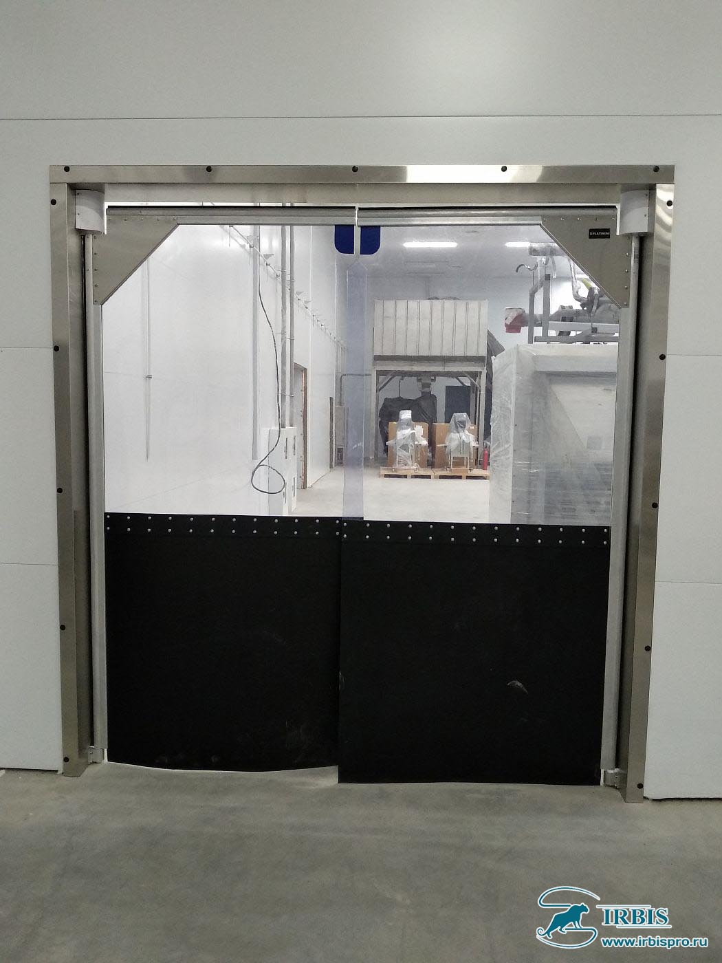 - за откатной или распашной дверью для минимизации потерь холода во время работы с открытой камерой