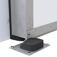 Башмаки устанавливаются через широкие пластины AISI304 с разнесенными точками крепления в пол, что позволяет исключить выкрашивание бетона и распределить нагрузку.
