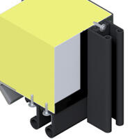 Для низкотемпературного исполнения используется резиновый профиль по периметру полотна в два контура. Жесткое крепление через прижимной профиль. Нижний уплотнитель повышенной износостойкости. Для обогрева уплотнителя используется система ПЭНов, установленная в раме и пороге.