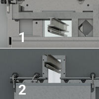 Откатная система Tube 300 грузоподъемностью 300 кг выполнена из нержавеющей стали AISI 304 (трубная направляющая и кронштейны), ролики из сверхвысокопрочного полиамида. Для низкотемпературного исполнения комплектуются усиленным порогом из нержавеющей стали.