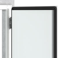 С внешней стороны закрывается на ключ, с внутренней стороны с функцией аварийного выхода. Изготавливается с разрывом мостика холода. Корпус из высокопрочного пластика, внутренний механизм и рычаг из пищевой нержавеющей стали.